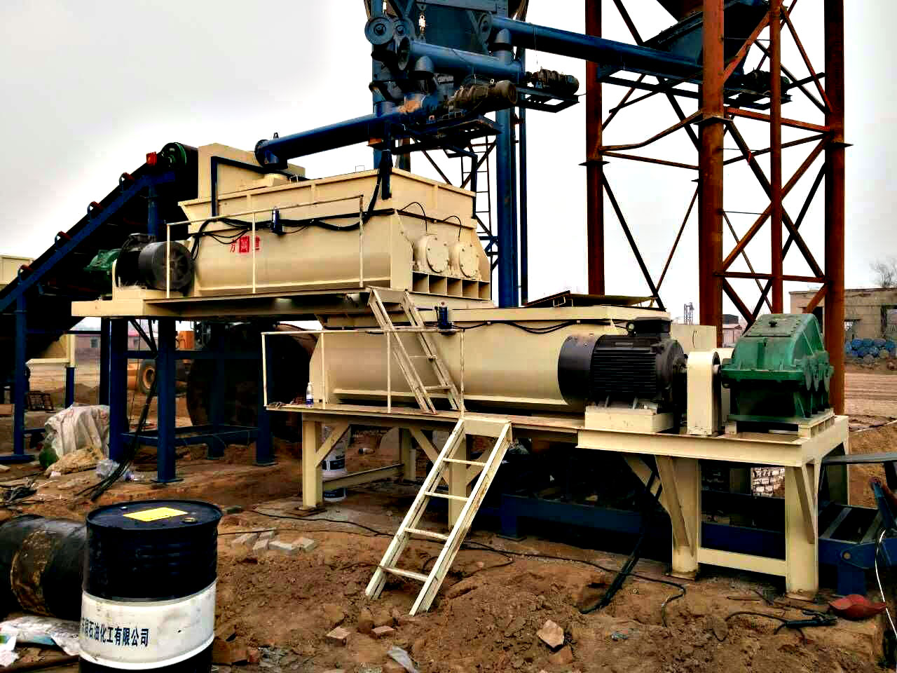 水穩(wěn)穩(wěn)定土雙拌缸兩級拌合設備適用各種無機結合穩(wěn)定材料的拌合生產,尤其適合低劑量抗裂型水泥穩(wěn)定礫石(碎石)混合料的拌合,使其強度均勻、抗離析,保證混合料均勻、色澤一致、不出現(xiàn)灰條、灰團和花面,水泥及水分合適均勻。
